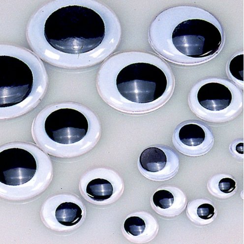 Dekorationsögon med rörlig pupill. Till olika typer av pyssel. Fästs med lim.