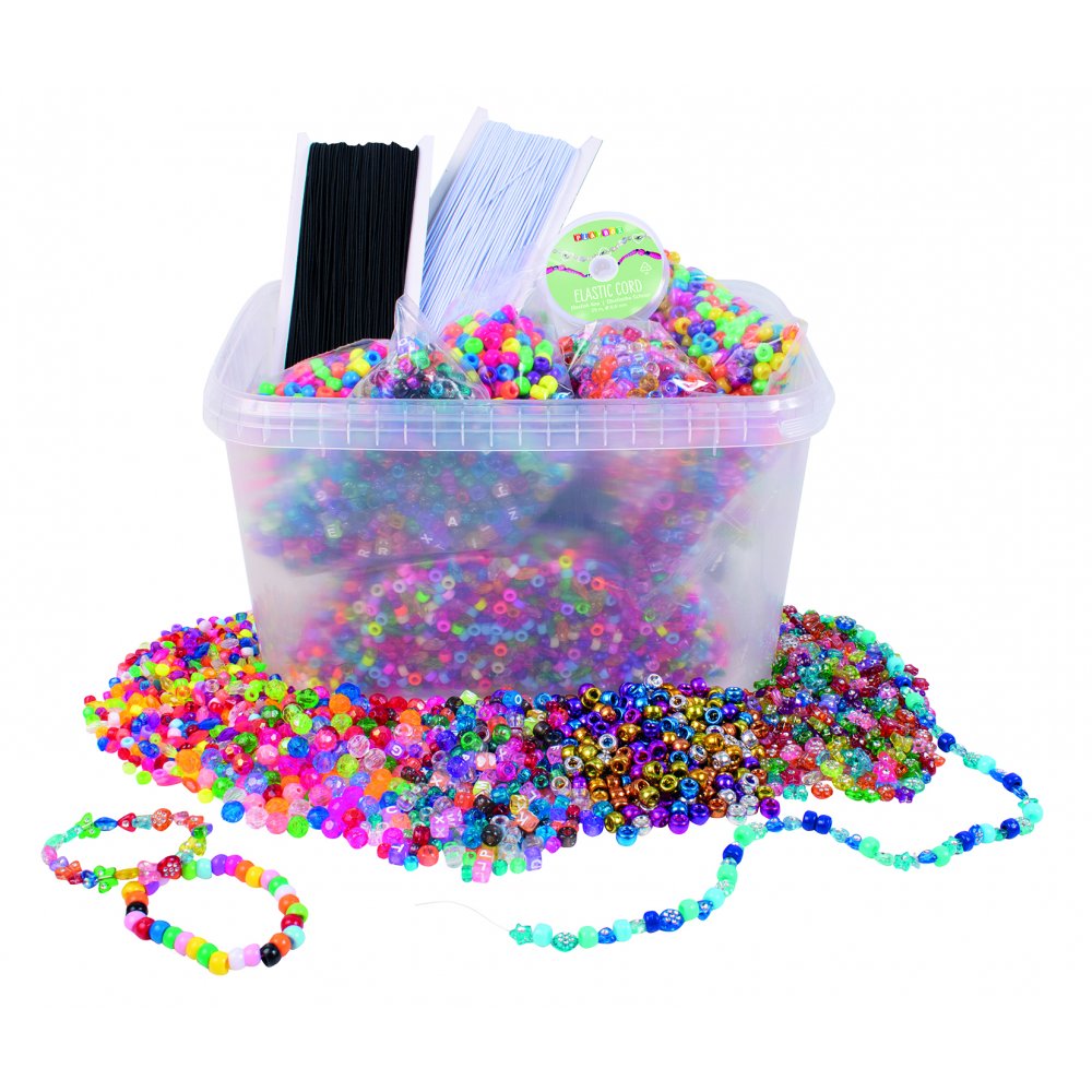 Ett startset med pärlor och snoddar i en praktisk hink, perfekt sysselsättning att samlas kring på exempelvis barnkalas. Hinken innehåller pärlor i massor av härliga färger och former samt praktiska snoddar och linor, det är bara att sätta igång och pyssla direkt.