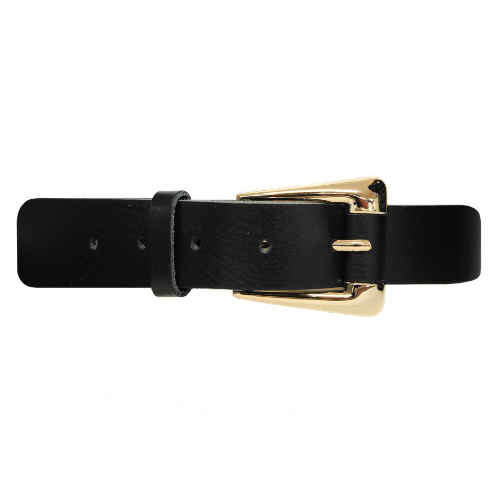 30mm damskärp i kalvläder med guldfärgat spänne med läderdetalj och slät läderrem.
