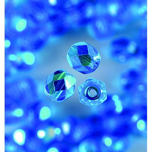 Glaspärlor facetterade - mörk akvamarin - runda, skimrande
